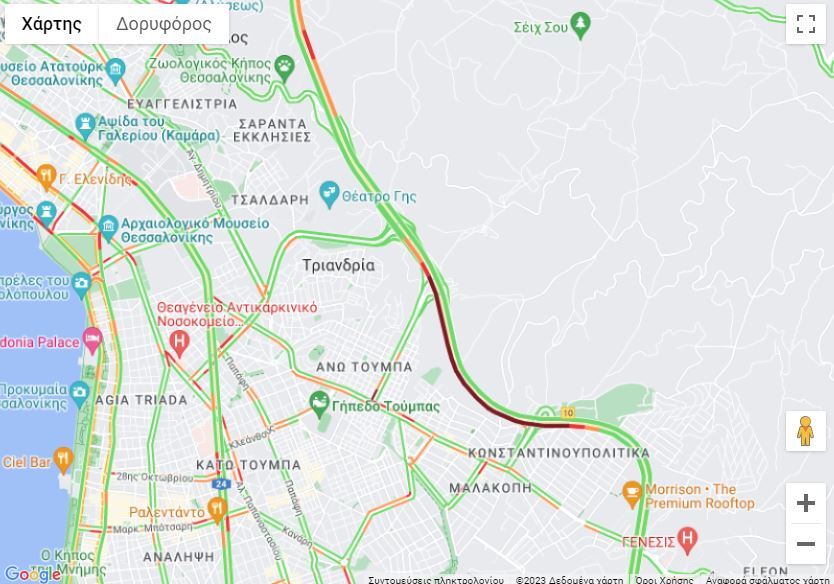 Aυτή την στιγμή υπάρχει μποτιλιάρισμα και καθυστερήσεις στην Περιφερειακή Οδό Θεσσαλονίκης και πιο συγκεκριμένα πριν από το τούνελ της Τούμπας με κατεύθυνση προς τα Ανατολικά.