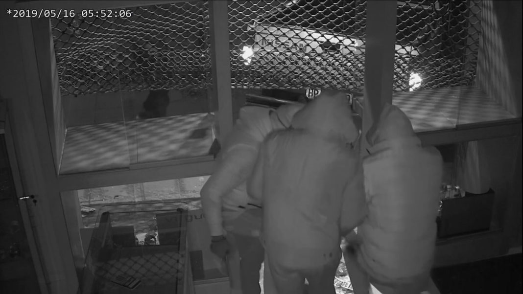 Οι τέσσερις διαρρήκτες φτάνουν ξημερώματα της 16ης Μαίου του 2019 με κλεμμένο αυτοκίνητο έξω το κοσμηματοπωλείο στη Νέα Μηχανιώνα.