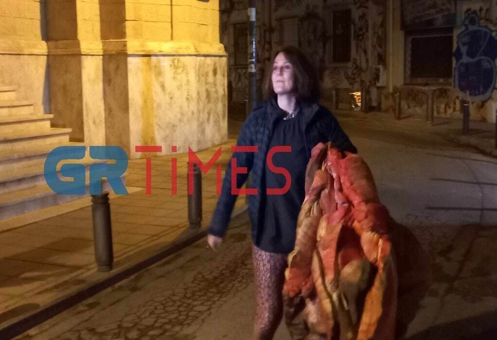 Η γυναίκα μετά το τέλος της πορείας και των επεισοδίων που ακολούθησαν στην πλατεία Καμάρας πραγματοποίησε ένα ασυνήθιστο δρώμενο. Ευρισκόμενη μέσα σε μια αυτοσχέδια κατασκευή που προσομοίαζε με καρδιά, μετακινείτο στο οδόστρωμα, τραβώντας τα βλέμματα των περαστικών.