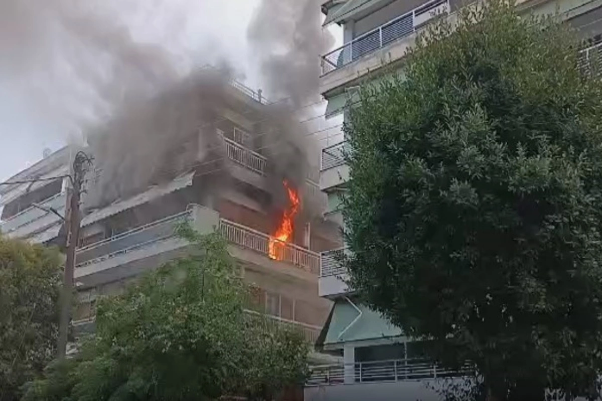 Στο σημείο επιχειρούν δεκάδες πυροσβέστες με στόχο να σβήσουν τη φωτιά πριν αυτή επεκταθεί και σε άλλα διαμερίσματα.