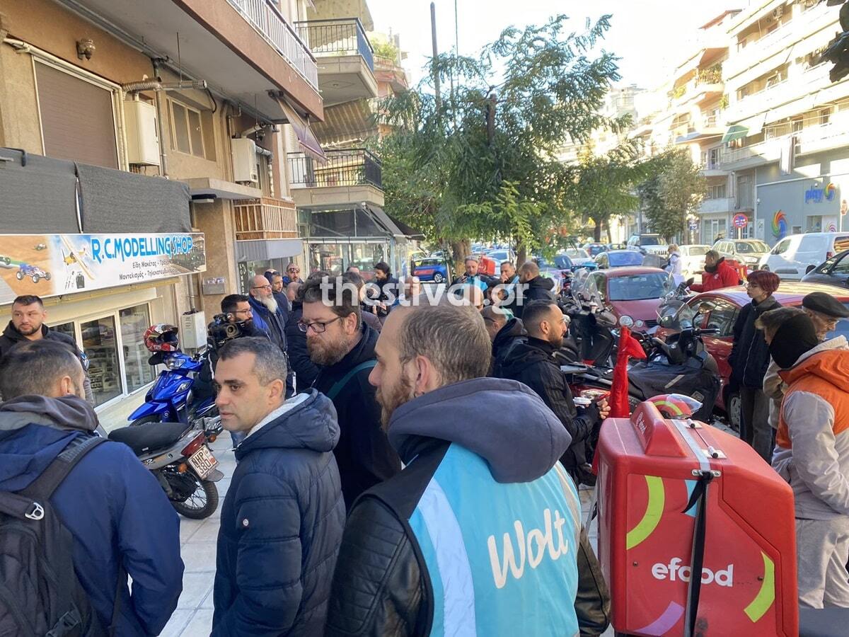 Οι διανομείς συγκεντρώθηκαν αρχικά στο σημείο όπου έγινε το δυστύχημα, στην οδό Απόλωννος, στην Τούμπα, όπου άφησαν κεράκια και λουλούδια στη μνήμη του 39χρονου διανομέα. Στη συνέχεια μετέβησαν στην Καμάρα από όπου και ξεκίνησε η μοτοπορεία.
