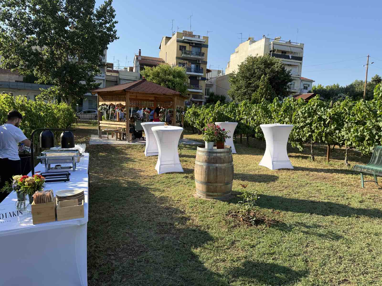 Η τελετή έγινε σε στενό οικογενειακό κύκλο, των περίπου 25 – 30 ατόμων, οι οποίοι όπως υπογράμμισε η νύφη «ενθουσιάστηκαν από το σκηνικό, καθώς ήταν κάτι το ξεχωριστό. Οι περισσότεροι δεν γνώριζαν ότι υπάρχει αστικός αμπελώνας στην πόλη και ξετρελάθηκαν με την ιδέα του δήμου Θεσσαλονίκης να δημιουργήσει κάτι το τόσο όμορφο ανάμεσα στις πολυκατοικίες. Μάλιστα, έφερε και ο σύζυγος κρασιά από το δικό του οινοποιείο και καθίσαμε στο χώρο, μετά το γάμο, να τα γευτούμε. ‘Ηταν κάτι πολύ διαφορετικό για καλοκαίρι από μια αίθουσα δημαρχείου».