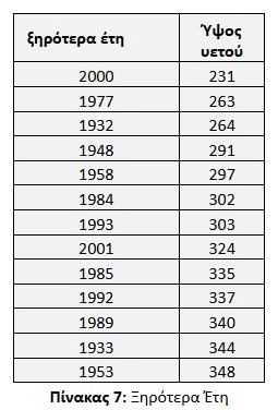 Οι πιο βροχερές και άνυδρες χρονιές