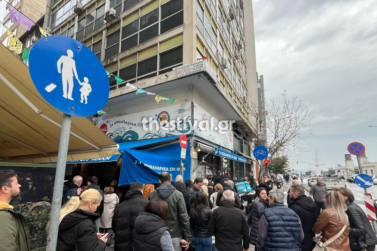 Στο κέντρο της Θεσσαλονίκης και συγκεκριμένα στα Λαδάδικα, πλήθος κόσμου επέλεξε να φάει έξω σε ταβερνάκια αυτό το μοναδικό έδεσμα, παρά τον βροχερό καιρό που επικρατεί στη «νύφη του Βορρά».