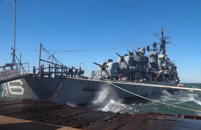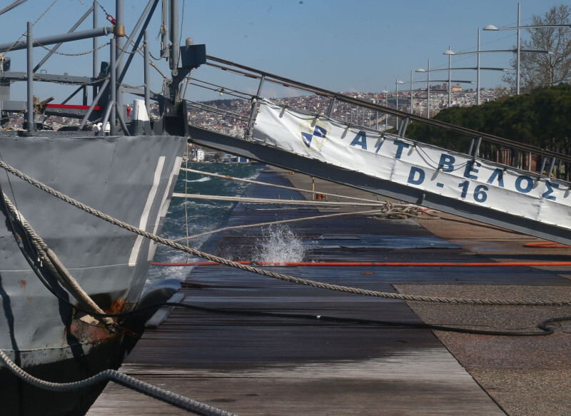 Το αγκυροβολημένο στη Νέα Παραλία πλοίο, που λειτουργεί ως μουσείο, παραδόθηκε στο έλεος των ανέμων και της θαλασσοταραχής, που κατάφεραν να σπάσουν τους κάβους των προστατευτικών μπαλονιών του, με αποτέλεσμα αυτό να βολοδέρνει πάνω στον ντόκο.