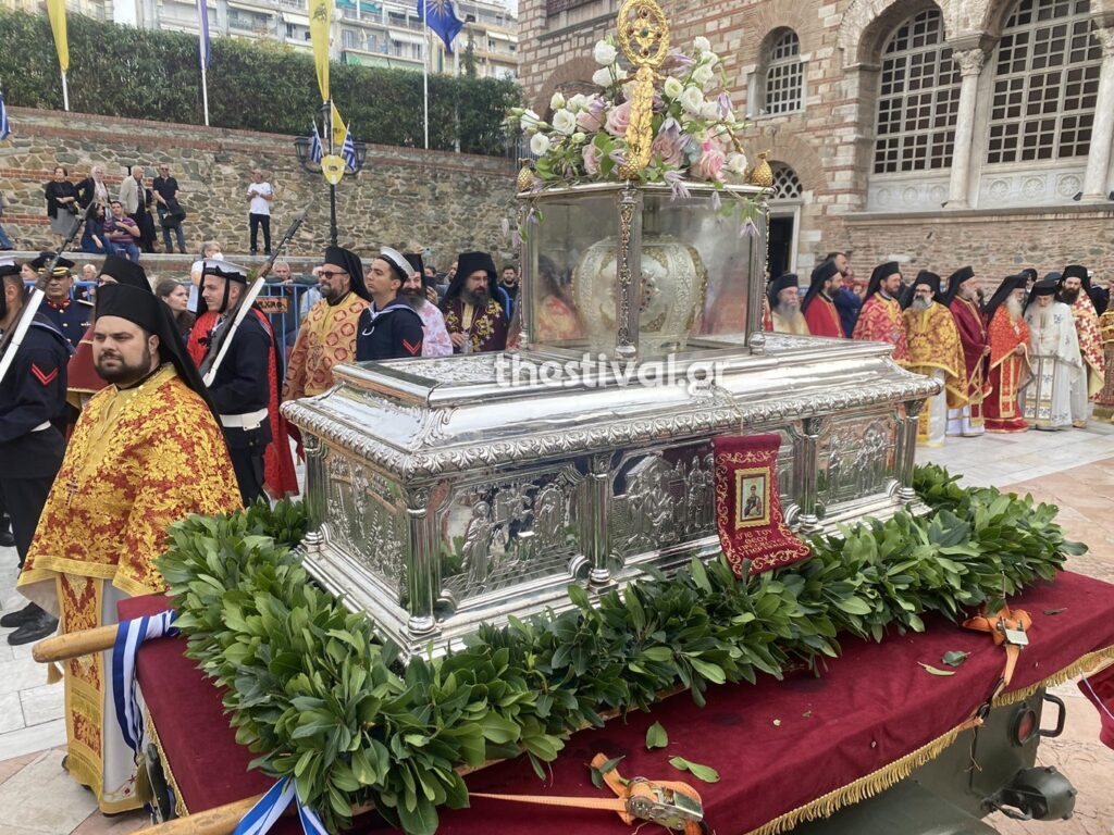 Τη λιτάνευση ακολούθησαν οι πολιτικές και στρατιωτικές αρχές, οι μπάντες του Γ΄ Σώματος Στρατού, της Αστυνομίας και του Δήμου Θεσσαλονίκης ενώ αγήματα του Στρατού και του Πολεμικού Ναυτικού απέδωσαν τιμές.