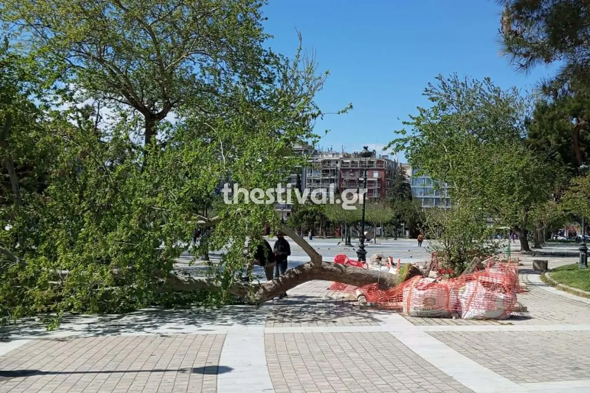 Σύμφωνα με το thestival.gr, η πτώση του δέντρου σημειώθηκε γύρω στις 13:00 το μεσημέρι στην πλατεία Αρχαίας Αγοράς.