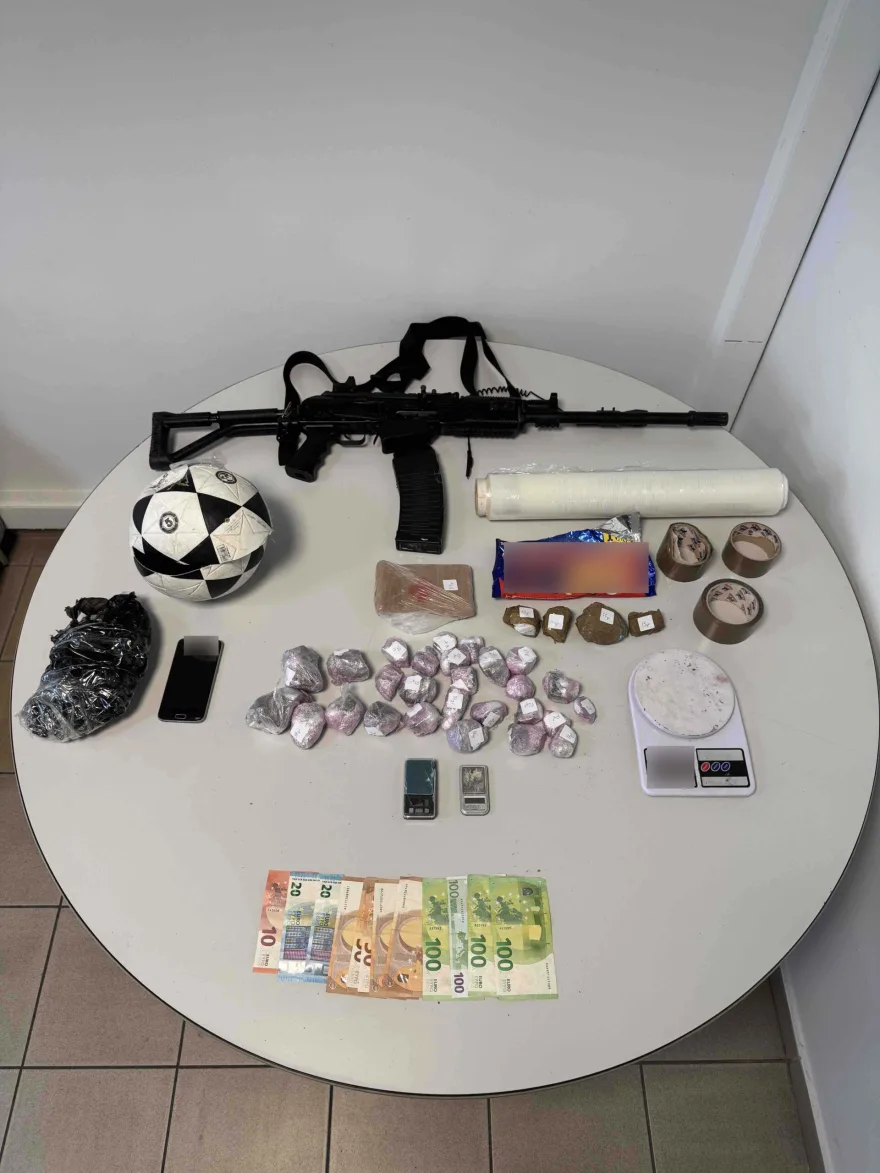 Όπως διαπιστώθηκε, οι δύο τους έκρυβαν ναρκωτικά και μια καραμπίνα κάτω από σκεπή μονοκατοικίας ενώ δεν είχαν διστάσει να μετατρέψουν σε κρυψώνα και μια μπάλα ποδοσφαίρου.