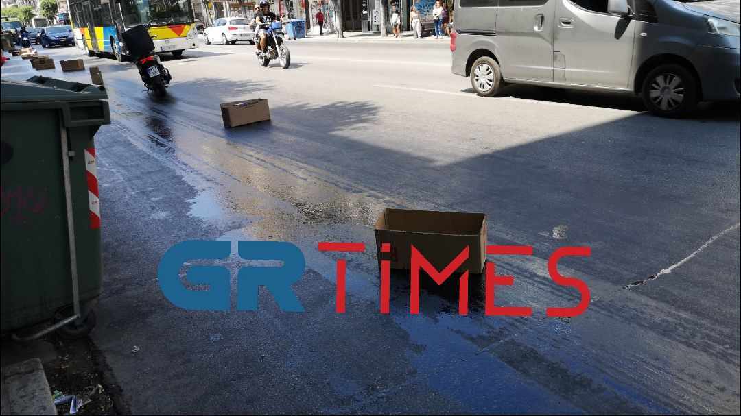 Σύμφωνα με καταστηματάρχες πάνω από 10 δίκυκλα γλίστρησαν, περίπου από το ύψος του Βαρδαρίου μέχρι την οδό Βενιζέλου στο ρεύμα προς ανατολικά, με αποτέλεσμα να τραυματιστούν ευτυχώς ελαφρά. Σύμφωνα με τις πρώτες πληροφορίες, τουλάχιστον τρεις οδηγοί μηχανών διακομίστηκαν με ασθενοφόρο του ΕΚΑΒ στο εφημερεύον νοσοκομείο.
