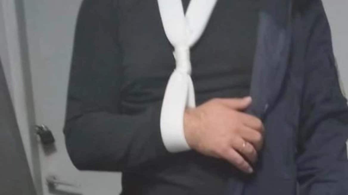 Φωτογραφία του τραυματία αστυνομικού δημοσίευσε στο Facebook ο πρόεδρος της Ένωσης Αστυνομικών Υπαλλήλων Θεσσαλονίκης, Θόδωρος Τσαϊρίδης.