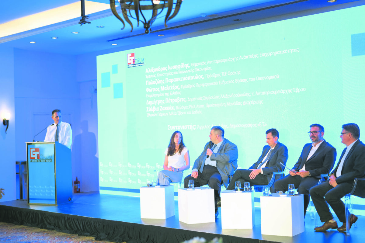 Ο αντιπεριφερειάρχης Ανάπτυξης, Επιχειρηματικότητας, Ερευνας, Καινοτομίας και Κοινωνικής Οικονομίας, Ανατολικής Μακεδονίας-Θράκης, Αλέξανδρος Ιωσηφίδης, υπογράμμισε την ανάγκη για στοχευμένες επενδύσεις που θα ενισχύσουν την οικονομική και περιβαλλοντική βιωσιμότητα. Ο πρόεδρος του τμήματος Θράκης του Τεχνικού Επιμελητηρίου Ελλάδος, Πολυζώης Παρασκευόπουλος, αναφέρθηκε στις τεχνολογικές καινοτομίες που μπορούν να συμβάλουν στη βιώσιμη ανάπτυξη.