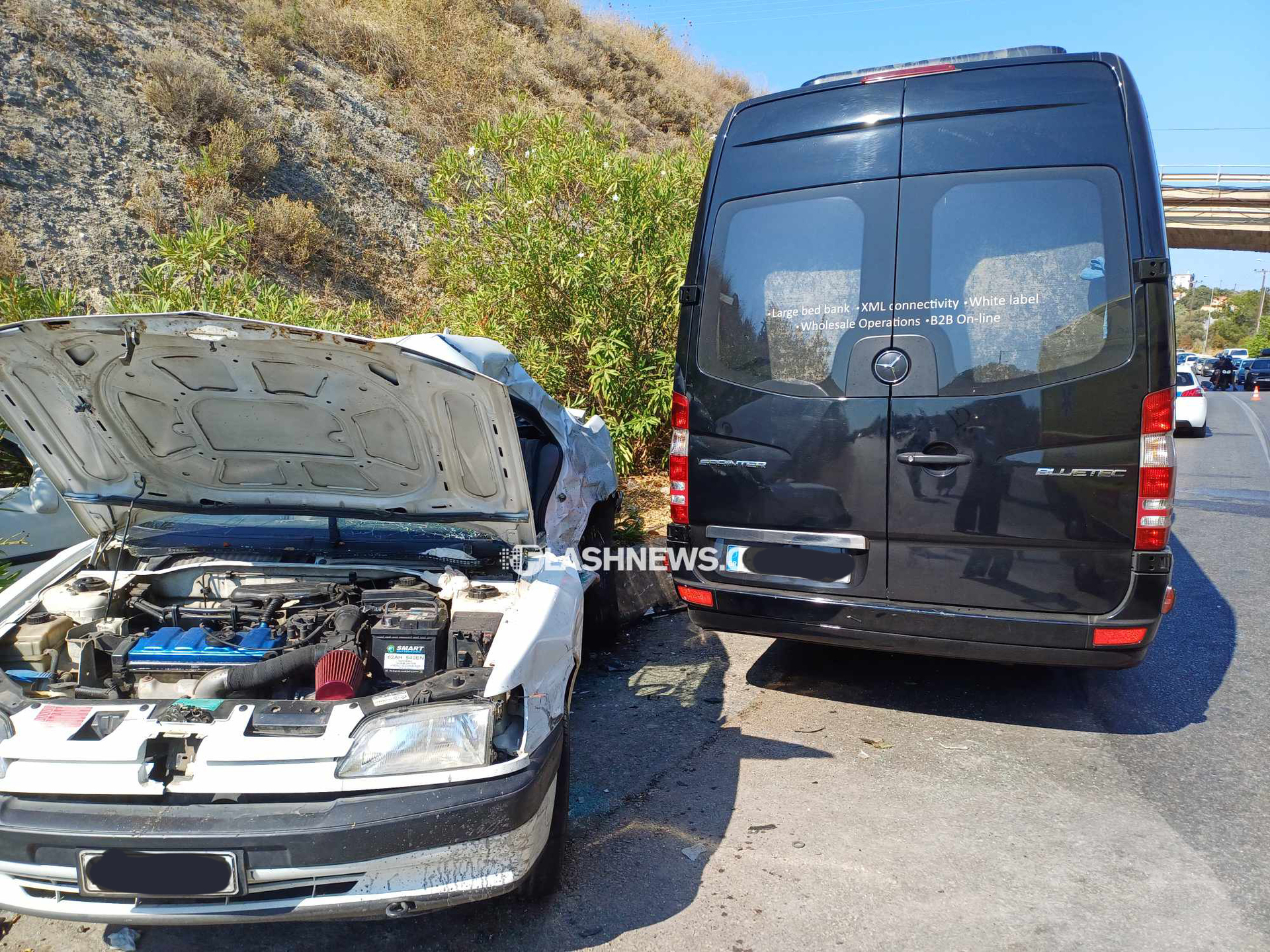Όλα συνέβησαν, όταν το Ι.Χ αυτοκίνητο που οδηγούσε ο ένας νεαρός, προσπάθησε σύμφωνα με μαρτυρίες να πραγματοποιήσει προσπέραση, χάθηκε ο έλεγχος και μετά από πρόσκρουση στο ρείθρο της οδικής αρτηρίας, συγκρούστηκε πλαγιομετωπικά με τουριστικό VAN το οποίο μετέφερε 16 τουρίστες. Πληροφορίες κάνουν λόγο για μη χρήση των ζωνών ασφαλείας με αποτέλεσμα ο ένας νεαρός να βρεθεί εκτός οχήματος.