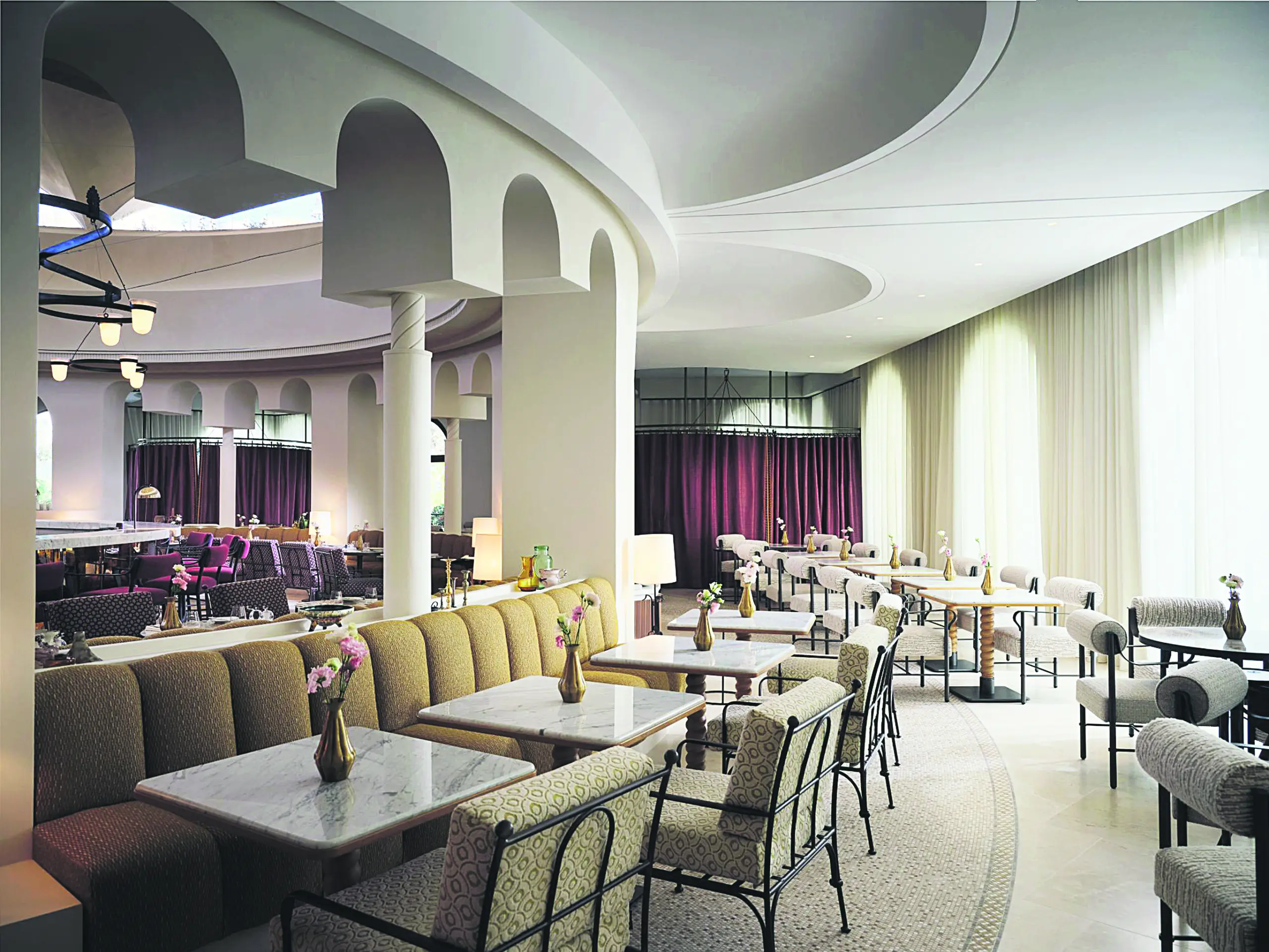 Στο αίθριο, η εμβληματική ελιά, κάτω από τα κλαδιά της οποίας κλείστηκαν μερικά από τα πιο σημαντικά deals των τελευταίων δεκαετιών, παραμένει στη θέση της αποτυπώνοντας τον βαθύ σεβασμό με τον οποίο ανακατασκευάστηκε ένα από τα πιο χαρακτηριστικά τοπόσημα της σύγχρονης Αθήνας.