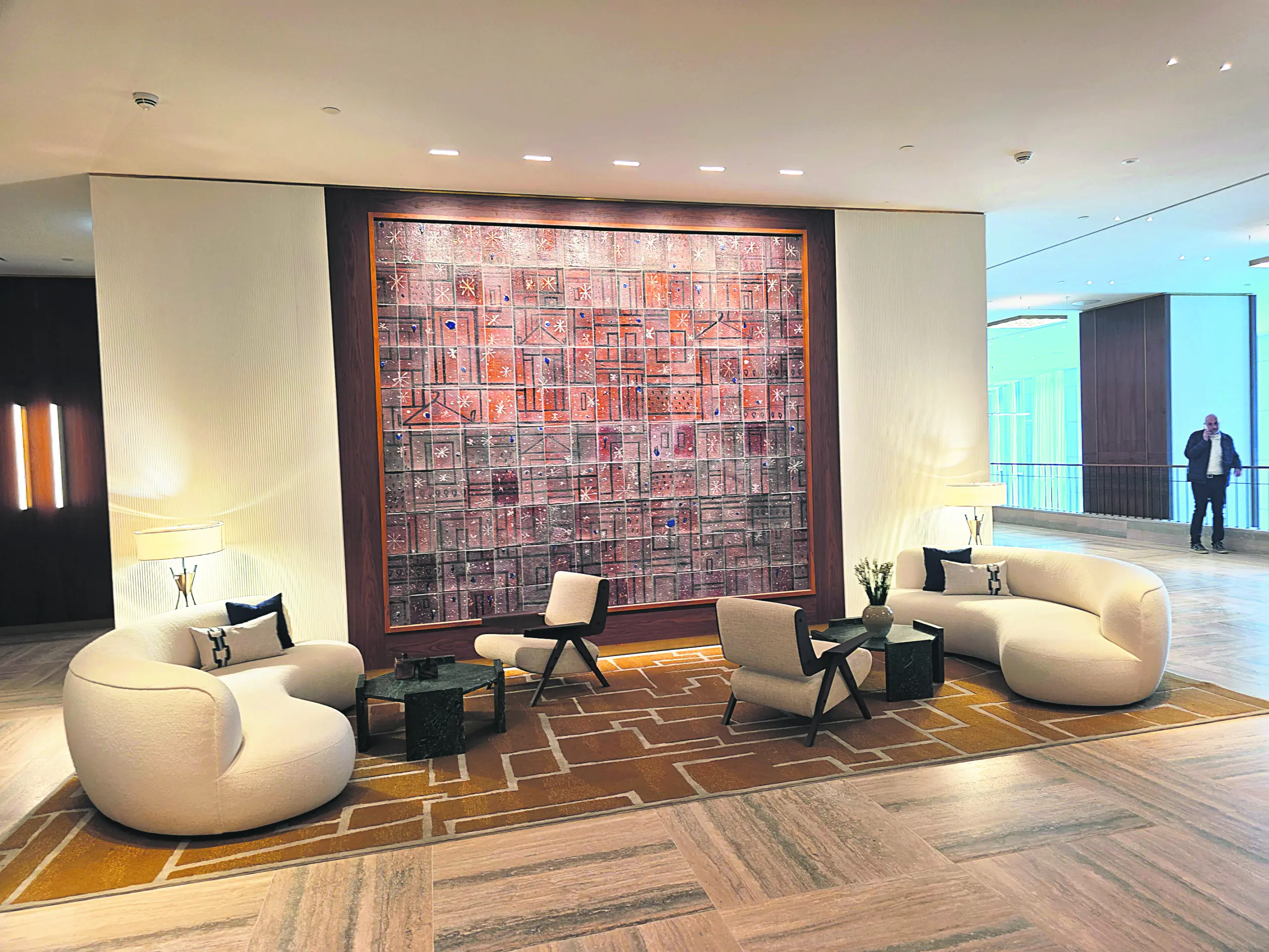 Το ίδιο συμβαίνει και με τις προσόψεις του Γιάννη Μόραλη, που αναδεικνύονται απόλυτα στο «Conrad Athens The Ilisian», ειδικά το βράδυ φωτισμένες από τη βραβευμένη σχεδιάστρια Ελευθερία Ντεκώ. Στο λόμπι, το υδάτινο στοιχείο κυριαρχεί στο κέντρο αντανακλώντας φινέτσα και πολυτέλεια. Στη δεξιά πλευρά, έχουν τοποθετηθεί προθήκες με αντικείμενα από το παρελθόν σε εντυπωσιακό μαρμάρινο φόντο. Ανάμεσά τους είναι το μενού που γεύτηκαν οι καλεσμένοι στα πρώτα εγκαίνια πριν από 63 χρόνια, ένα πράσινο πιάτο που γράφει «Hilton» και ένα ξύλινο κουτί για τα γράμματα διηγούνται τις δικές τους ιστορίες από τη διαδρομή του διάσημου προορισμού.