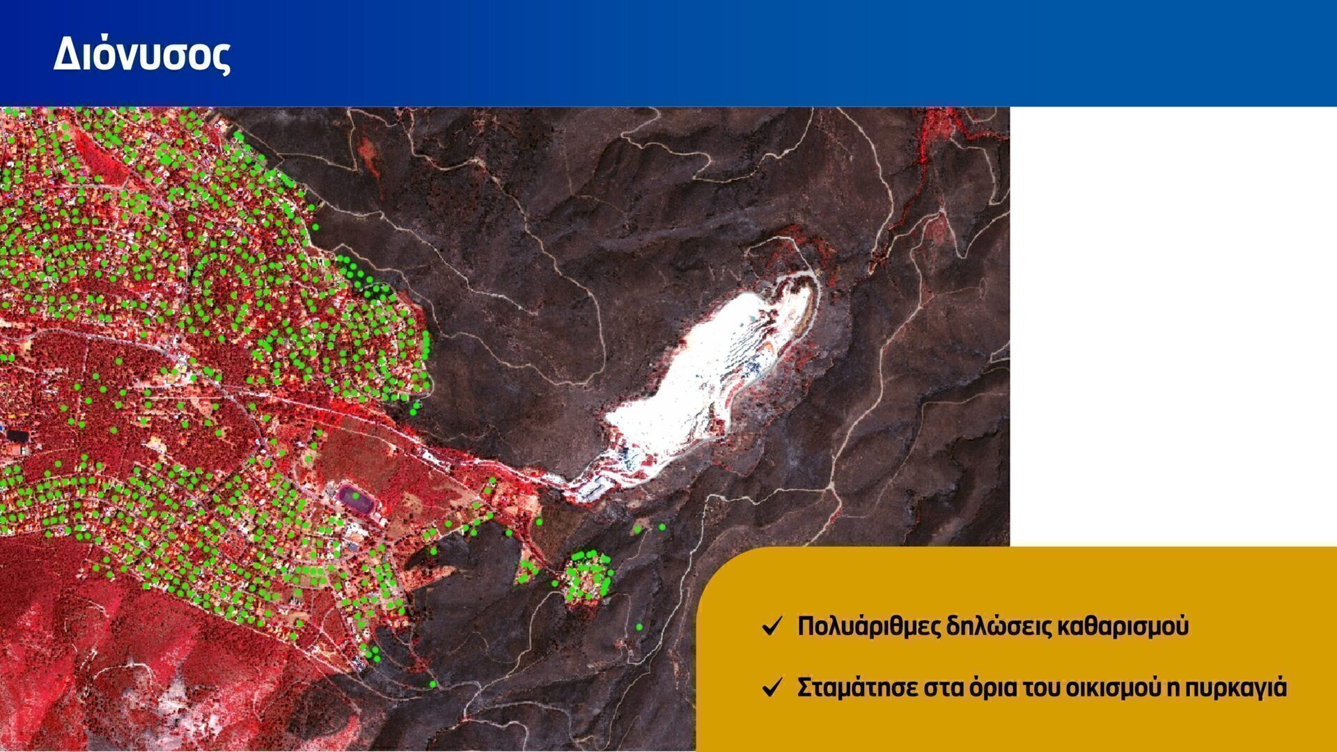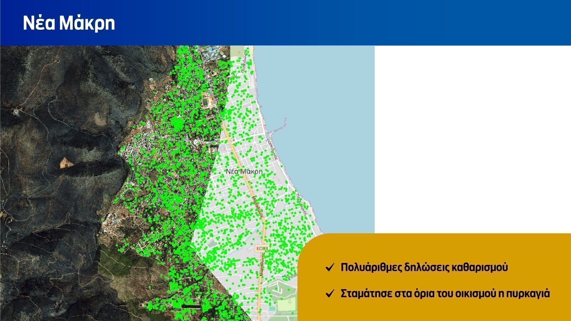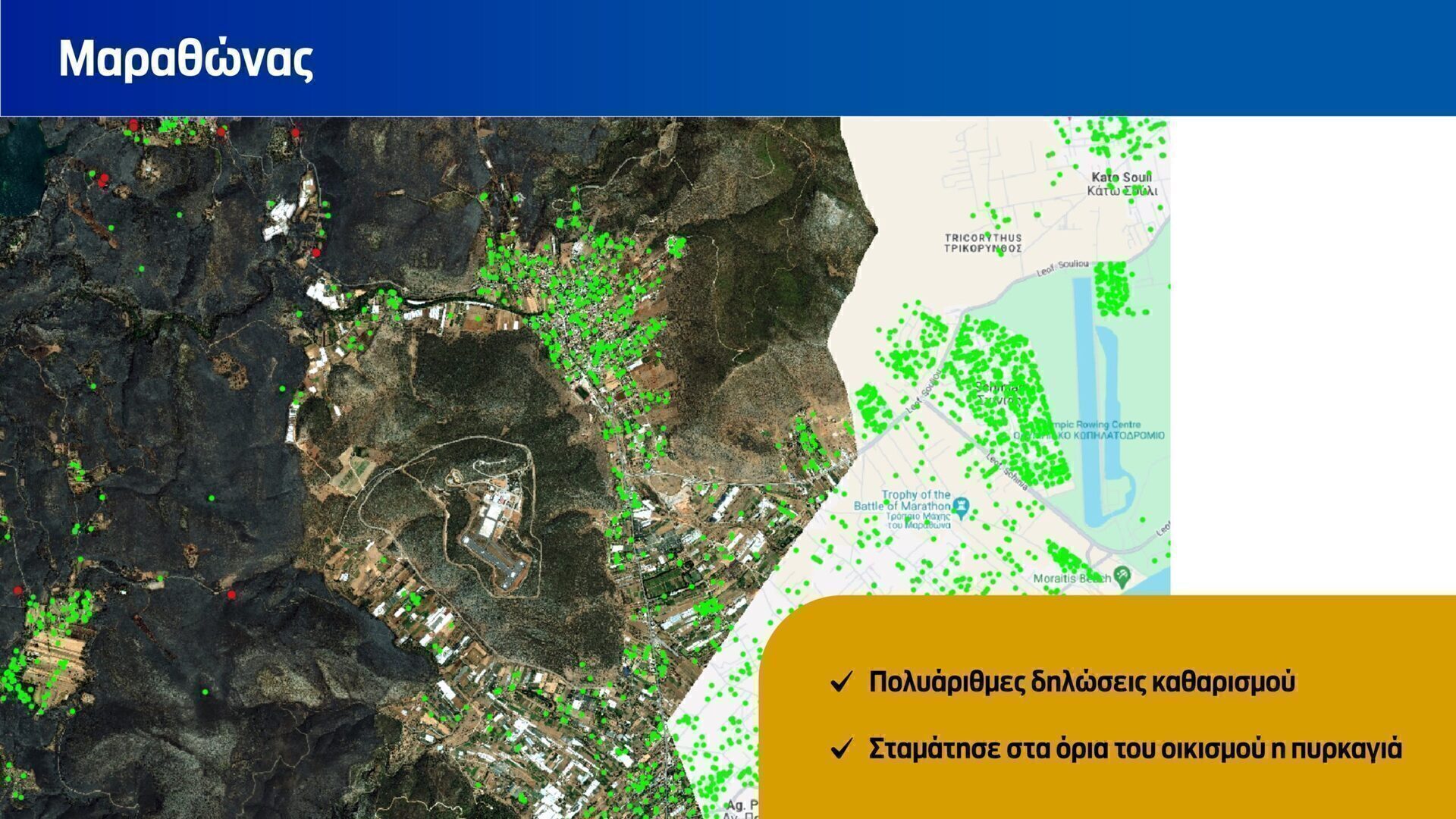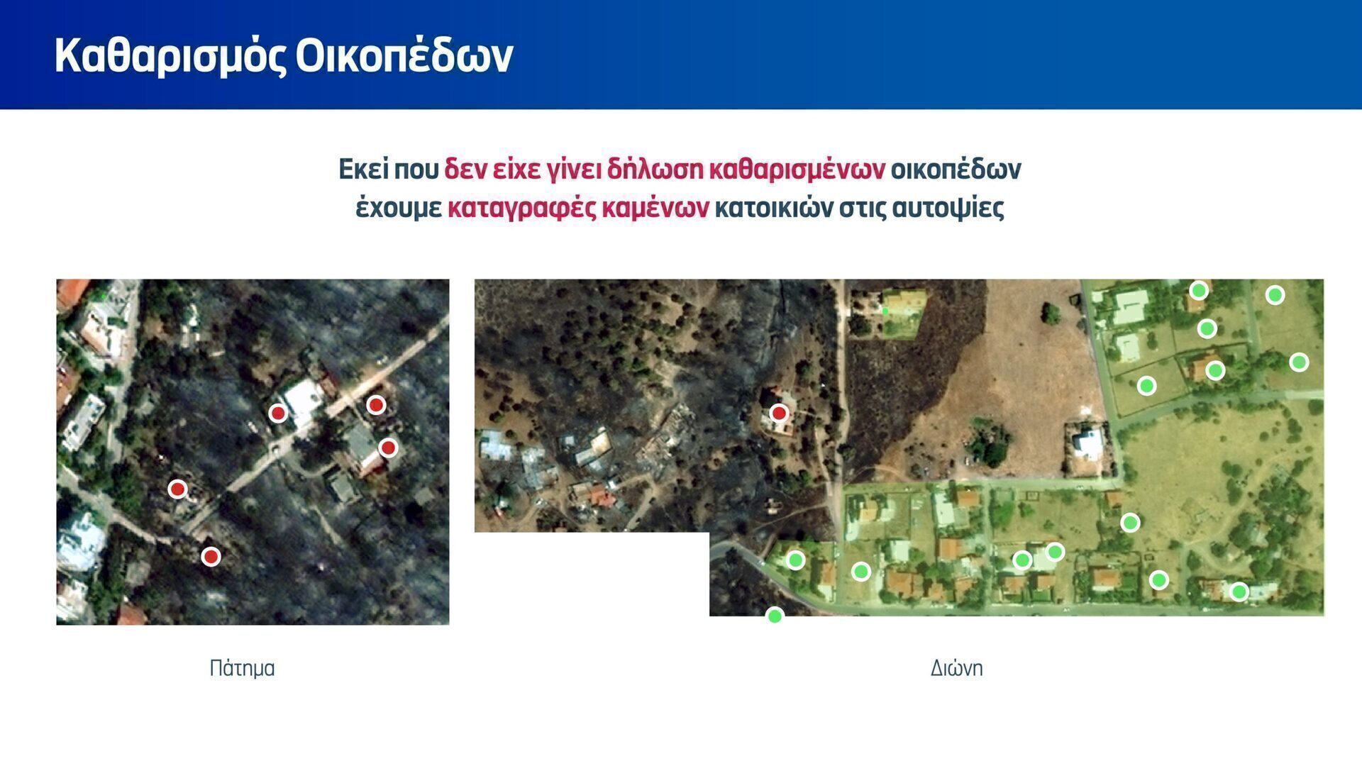 Ενα ενδιαφέρον συμπέρασμα για την αποτελεσματικότητα του μέτρου καθαρισμού των οικοπέδων προκύπτει από την ανάλυση των δεδομένων και αντιπαραβολή με τις 83.000 δηλώσεις καθαρισμού οικοπέδων στις πυρόπληκτες περιοχές. Στις περιοχές που υπήρχαν πολλές δηλώσεις καθαρισμού, η φωτιά στις περισσότερες περιπτώσεις δεν προχώρησε στο εσωτερικό τους, ενώ εκεί που δεν υπήρχαν η φωτιά εξαπλώθηκε πιο μαζικά. Χαρακτηριστικό παράδειγμα είναι ο οικισμός της «Διώνης» στον Δήμο Ραφήνας – Πικερμίου. Στην περιοχή είχαν γίνει 300 δηλώσεις καθαρισμού και, ενώ η πυρκαγιά διέσχισε μέρος του οικισμού, δεν υπήρξαν σημαντικές ζημιές σε κατοικίες.