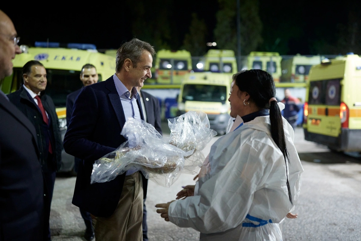 Στο τέλος, μέσω ασυρμάτου ο Πρωθυπουργός έστειλε ευχαριστήριο μήνυμα με ευχές στο προσωπικό του ΕΚΑΒ που βρισκόταν στο καθήκον.