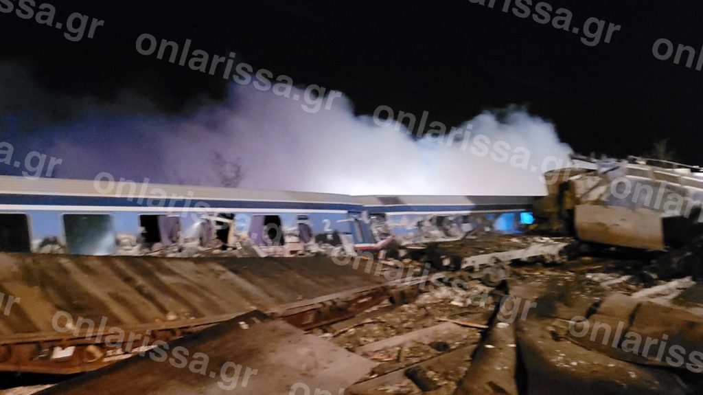 Υπήρξε σύγκρουση της αμαξοστοιχίας που εκτελούσε το δρομολόγιο Αθήνα-Θεσσαλονίκη και αναχώρησε στις 19:22, με μία εμπορική αμαξοστοιχία λίγο έξω από τα Τέμπη και οι αρχές ενημερώθηκαν από επιβάτη μέσω του 112. Οι πρώτες πληροφορίες αναφέρουν ότι οι δύο αμαξοστοιχίες ήταν κατά λάθος στην ίδια γραμμή και συγκρούστηκαν ενώ δεν υπήρξε εκτροχιασμός. Αμέσως πήραν φωτιά κάποια βαγόνια και ακολούθησε μεγάλη επιχείρηση για να απομακρυνθούν όλοι οι επιβάτες.