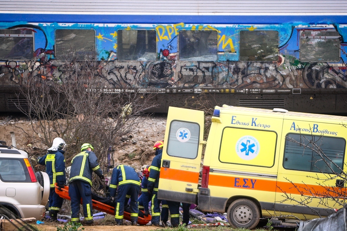 Στην επιχείρηση συμμετέχουν συνολικά 150 πυροσβέστες και του Εθνικού Κέντρου Άμεσης Βοήθειας με 40 ασθενοφόρα. Το έργο τους συνδράμουν 32 αστυνομικοί με 15 περιπολικά. Επίσης, γερανοφόρα οχήματα και μηχανουργοί από την Αθήνα μεταβαίνουν στο σημείο για να επιχειρήσουν στα συντρίμμια της επιβατικής αμαξοστοιχίας.