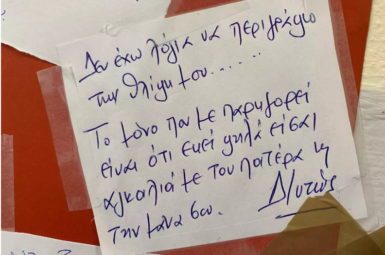 «Έχουμε δημιουργήσει μαζί με τα παιδιά, μέσα στο σχολείο, δυο γωνίες έκφρασης και συμπαράστασης για τους συμμαθητές, τους φίλους και τους καθηγητές του Παναγιώτη. Αρχικά τοποθετήσαμε όλα αυτά τα μηνύματα και τη φωτογραφία του, στο θρανίο του, αλλά τελικά αποφασίσαμε ότι είναι καλύτερα να υπάρχουν οι γωνιές του, έξω από την αίθουσα διδασκαλίας. Όλοι έχουν αφήσει λευκά λουλούδια και τα μήνυμά τους για τον τραγικό χαμό του. Όλα απευθύνονται στον Παναγιώτη», αναφέρει συγκινημένος.