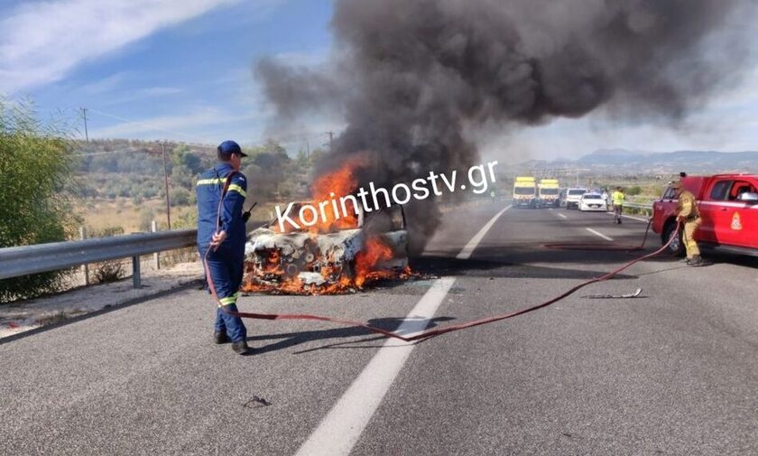 Σύμφωνα με το korinthostv.gr ένα ταξί με 3 επιβαίνοντες τυλίχθηκε στις φλόγες στο 82ο χλμ της Εθνικής Οδού Κορίνθου – Πατρών, στο ύψος της Αρχαίας Κορίνθου.