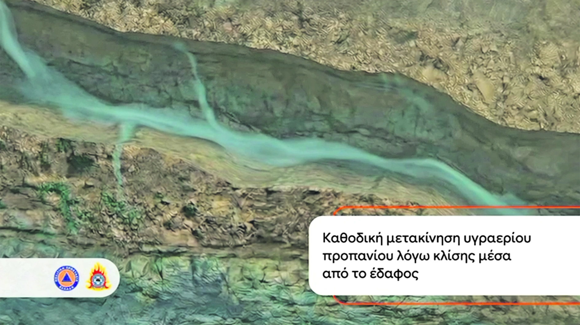 Κατόπιν εξειδικευμένων ελέγχων με χρήση αζώτου, όπως τόνισε, διαπιστώθηκε διαρροή στο έδαφος, γεγονός που οδήγησε στη διενέργεια τομής και εκσκαφής σε βάθος περίπου 60 εκατοστών, όπου εντοπίστηκε εκτεταμένη διαρροή εντός του εδάφους. Η διαρροή εκτιμάται ότι ήταν πολύμηνη, με τα ανιχνευτικά μέσα να καταγράφουν εξαιρετικά υψηλές συγκεντρώσεις προπανίου. Η σημαντική αυτή διαφυγή προπανίου, μέσω του εδάφους, μετακινήθηκε σε απόσταση περίπου 25 μέτρων και συγκρατήθηκε σε υπόγειο χώρο, όπου, σπινθηρισμός -που προκλήθηκε από ηλεκτρομηχανολογικό εξοπλισμό της εγκατάστασης- οδήγησε σε έκρηξη.