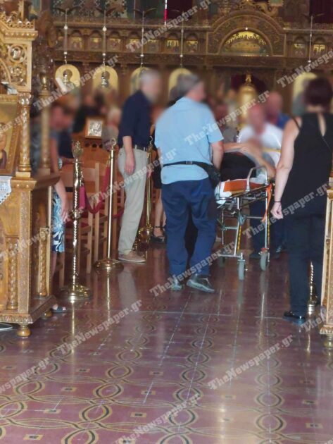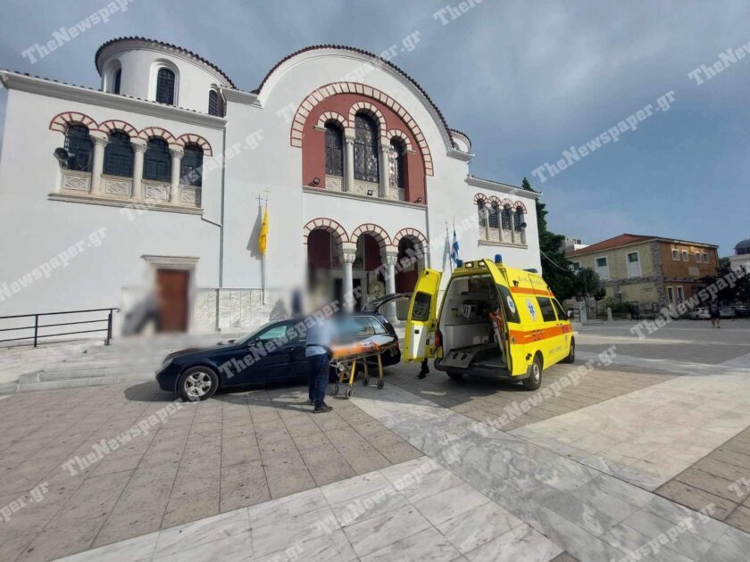 Ασθενοφόρο του ΕΚΑΒ έφτασε στην εκκλησία και μετέφερε τον άνδρα στο Νοσοκομείο Βόλου.