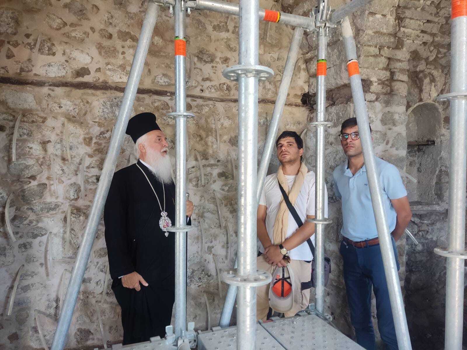 Επίσης ο Σεβ. κ. Ιερόθεος επισκέφθηκε τον παλαιό βυζαντινό και εμβληματικό Ναό του Αγίου Βασιλείου, ο οποίος συμπεριελήφθη με παρέμβασή του στα προγράμματα αποκαταστάσεως του μνημείου από την αρμόδια Εφορία Βυζαντινών Αρχαιοτήτων της Περιφερείας και ενημερώθηκε εμπεριστατωμένα για την πορεία των εργασιών αναστήλωσής του και την εξέλιξη του έργου από τους εργαζόμενους σε αυτό. Εξέφρασε την ικανοποίηση του και απήυθυνε τα συγχαρητήριά του στον Προϊστάμενο της Εφορείας και στους εργαζόμενους Αρχαιολόγους, ευχόμενος την ταχεία περάτωση της αποκαταστάσεως του ιστορικού μνημείου.