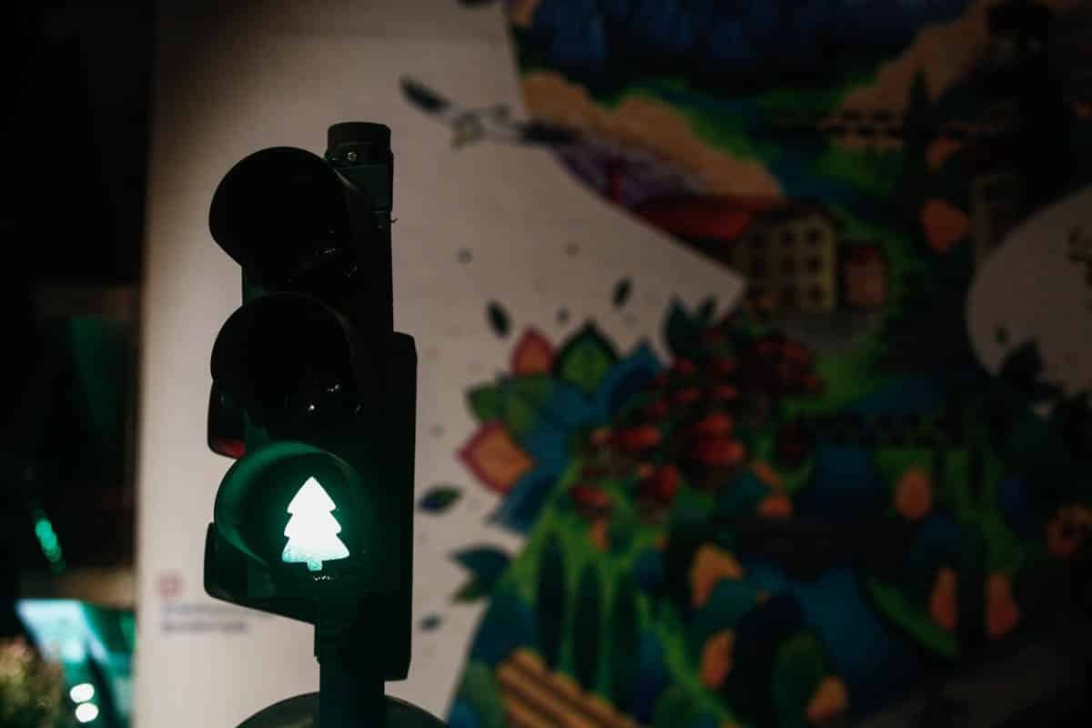 Στη διασταύρωση των οδών Βενιζέλου και Καρδίτσας, στο πράσινο εμφανίζεται ένα χριστουγεννιάτικο δέντρο, στο κόκκινο ο Άγιος Βασίλης και στο κίτρινο ο μικρός πρίγκιπας.