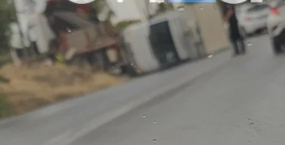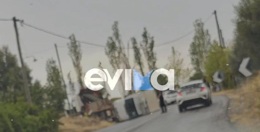 Ειδικότερα, σύμφωνα με πληροφορίες του evima.gr φορτηγό τούμπαρε στη μέση του δρόμου έξω από το Αλιβέρι.