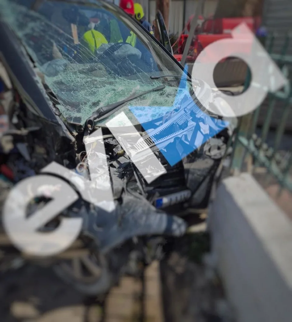 Η σύγκρουση ήταν τόσο σφοδρή, που είχε ως αποτέλεσμα το αυτοκίνητο να εκτοπιστεί σε μάντρα σπιτιού.