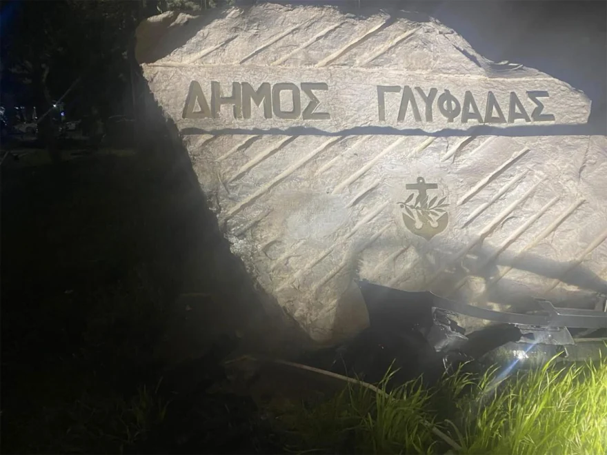 Το ένα ΙΧ έπεσε με μεγάλη ταχύτητα πάνω στον βράχο που έχει τοποθετήσει ο Δήμος Γλυφάδας, στη συνέχεια έπεσε πάνω σε μία στάση την οποία διέλυσε, έκοψε μία κολόνα φωτισμού και κατέληξε στη μέση του δρόμου.
