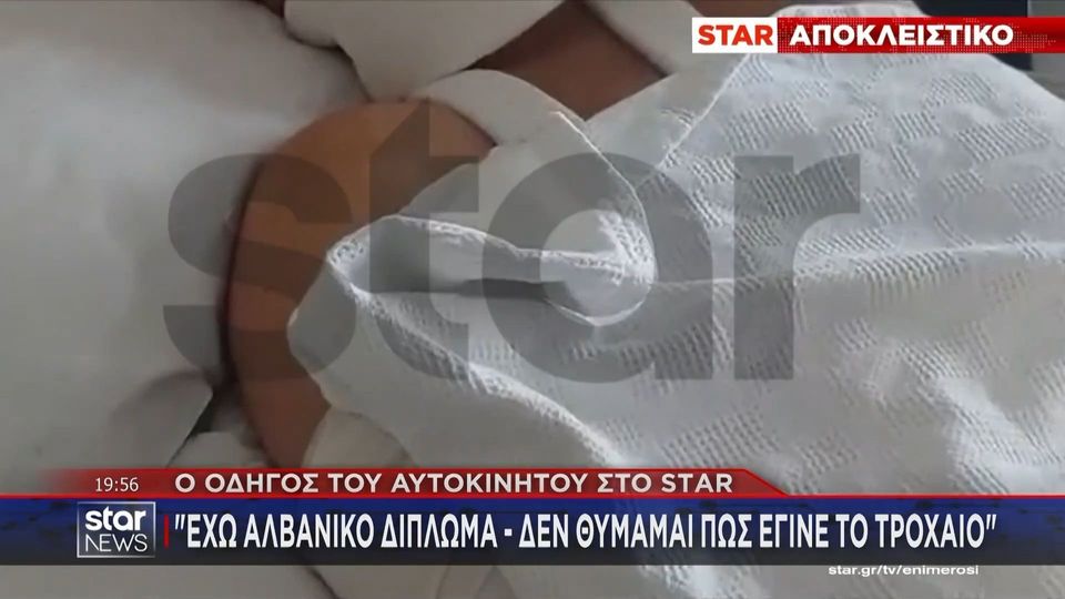 «Απλά, άκουσα έναν θόρυβο και μόνο αυτό. Ένα μπαμ. Εγώ φόραγα ζώνη» είπε στην κάμερα του Star ο 20χρονος, ενώ ισχυρίστηκε πως έχει δίπλωμα, το οποίο έχει εκδώσει στην Αλβανία. «Ναι, έχω δίπλωμα. Έχω αλβανικό δίπλωμα και είμαι τρεις μήνες εδώ, ήρθα σαν τουρίστας Πώς έγινε; Δεν θυμάμαι πώς έγινε. Σημασία έχει ότι έχω δίπλωμα, αυτό έχει σημασία» είπε ο 20χρονος από το νοσοκομείο και πρόσθεσε: «Η κοπελιά δίπλα είναι, δόξα τω Θεώ, και αυτή καλά. Εύχομαι περαστικά της και να προσέχουν όλοι».