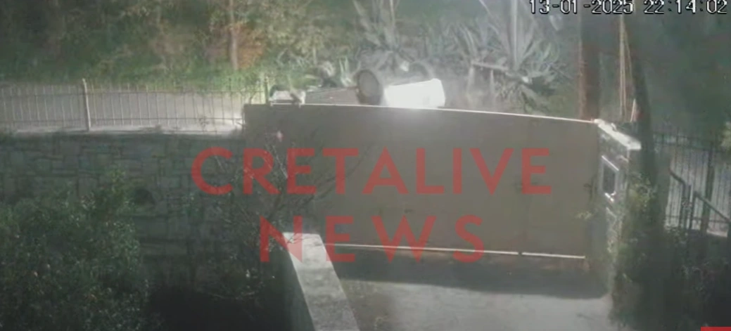 Όπως φαίνεται σε βίντεο από κάμερα ασφαλείας κατοικίας στην οδό Αγίου Αντωνίου & Νικολάου, κοντά στο Πειραματικό Γυμνάσιο του Ηρακλείου, το λευκού χρώματος αυτοκίνητο βγήκε εκτός δρόμου και ντελαπάρισε.