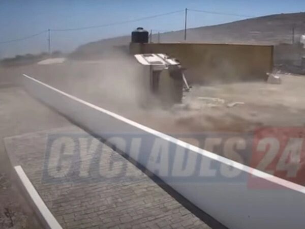Το μεσημέρι στο Εμπορείο της Σαντορίνης, σύμφωνα με το cyclades24.gr, οι ισχυρές ριπές του ανέμου σήκωσαν κυριολεκτικά από το έδαφος ένα τροχόσπιτο και το παρέσυραν αρκετά μέτρα μακριά. Μάλιστα, το τροχόσπιτο περιστράφηκε γύρω από τον άξονά του προτού καταλήξει και πάλι στο έδαφος εντελώς κατεστραμμένο. Ευτυχώς εκείνη την ώρα ήταν άδειο και έτσι αποτράπηκαν τα χειρότερα με κάμερα ασφαλείας από σπίτι της περιοχής να καταγράφει το όλο περιστατικό. Όπως αναφέρει το cyclades.gr, οι Αρχές καλούν τους πολίτες και τους επισκέπτες να είναι ιδιαίτερα προσεκτικοί, αφού οι ισχυροί άνεμοι αναμένεται να συνεχιστούν και τις επόμενες ώρες.