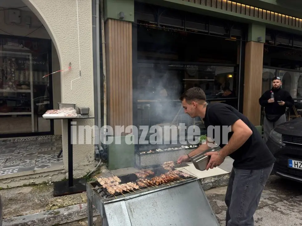 Λίγο μετά τις 8:00 άναψαν οι πρώτες φωτιές, με τις σούβλες να παίρνουν μπρος και τις μυρωδιές των ψητών να γεμίζουν τους δρόμους, δημιουργώντας εορταστική ατμόσφαιρα.