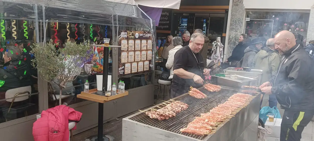 Το κέντρο της Θεσσαλονίκης κινείται σε αποκριάτικους ρυθμούς από νωρίς το πρωί της Τσικνοπέμπτης, με την οδό Βασιλέως Ηρακλείου να μετατρέπεται σε υπαίθριο γλέντι. Οι προετοιμασίες ξεκίνησαν από τις 7 το πρωί, με επαγγελματίες της εστίασης και διοργανωτές να στήνουν ψησταριές και να ετοιμάζουν τον χώρο για τη μεγάλη γιορτή.