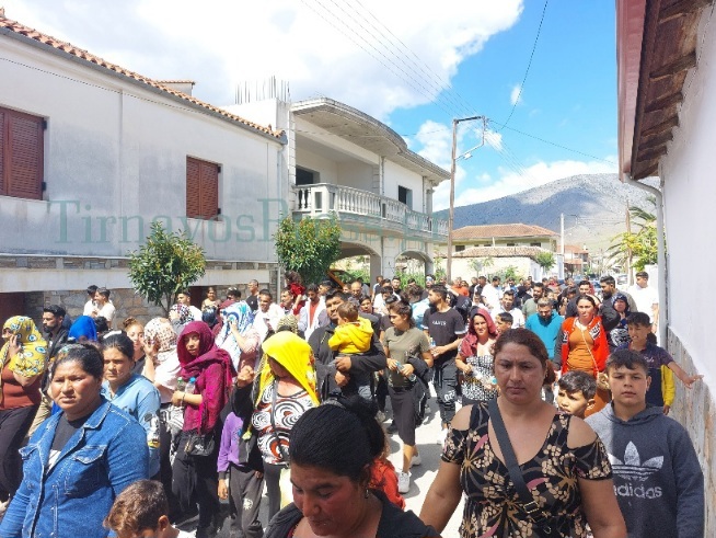 Δεκάδες Ρομά συγκεντρώθηκαν από νωρίς στο σπίτι του 19χρονου, απ’ όπου ξεκίνησε η πομπή, που διήλθε μέσα από τους δρόμους του Τυρνάβου με προορισμό την εκκλησία και το κοιμητήριο.
