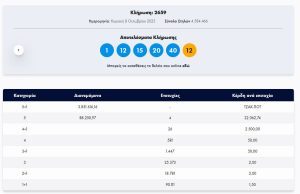 Σύμφωνα με το zarpanews.gr το τυχερό δελτίο παίχτηκε στις Καλύβες Αποκορώνου στα Χανιά, στο πρακτορείο του Κου. Μαράκη και έδωσε στον τυχερό 22.062,74 ευρώ.