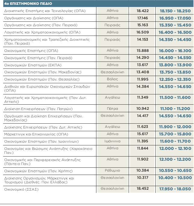 Ενδεικτικά, μία από τις πιο υψηλόβαθμες σχολές η Διοικητικής Επιστήμης και Τεχνολογίας στο ΟΠΑ αναμένεται να πέσει από τα 18.422 μόρια στα 18.150 έως 18.250 μόρια.