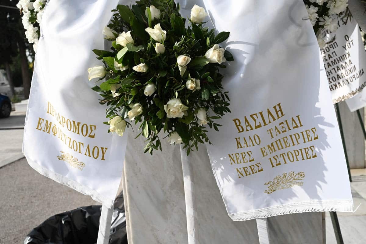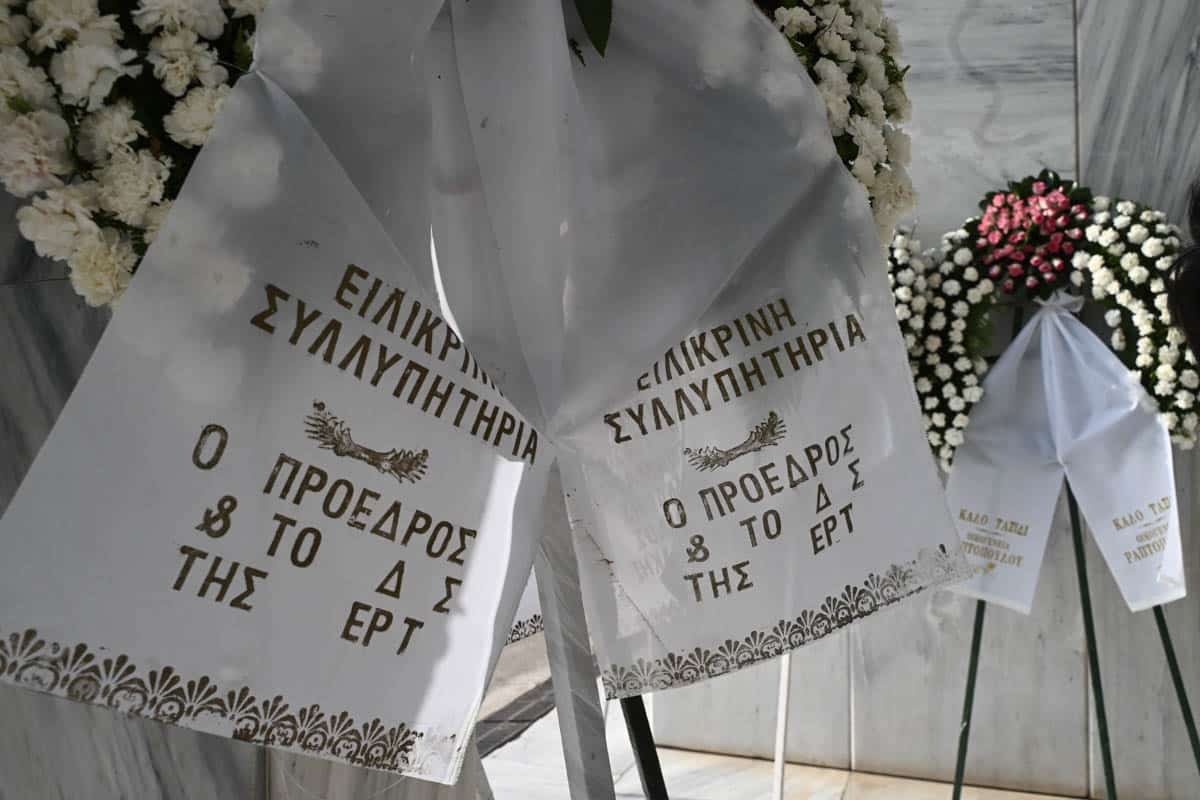 Στεφάνια απέστειλαν, μεταξύ άλλων, ο πρόεδρος του ΣΥΡΙΖΑ-ΠΣ, Στέφανος Κασσελάκης, ο πρόεδρος του ΠΑΣΟΚ-Κινήματος Αλλαγής, Νίκος Ανδρουλάκης, η υπουργός Πολιτισμού Λίνα Μενδώνη, ο πρώην πρωθυπουπουργός , Αλέξης Τσίπρας, ο ΣΥΡΙΖΑ, ο Δήμαρχος Καβάλας, η ΕΣΗΕΑ, ο πρόεδρος και το ΔΣ της ΕΡΤ κ.α.