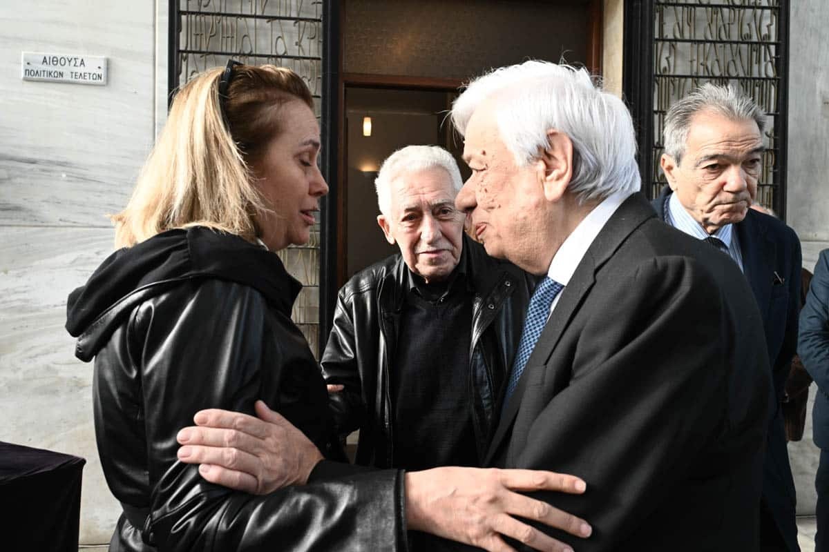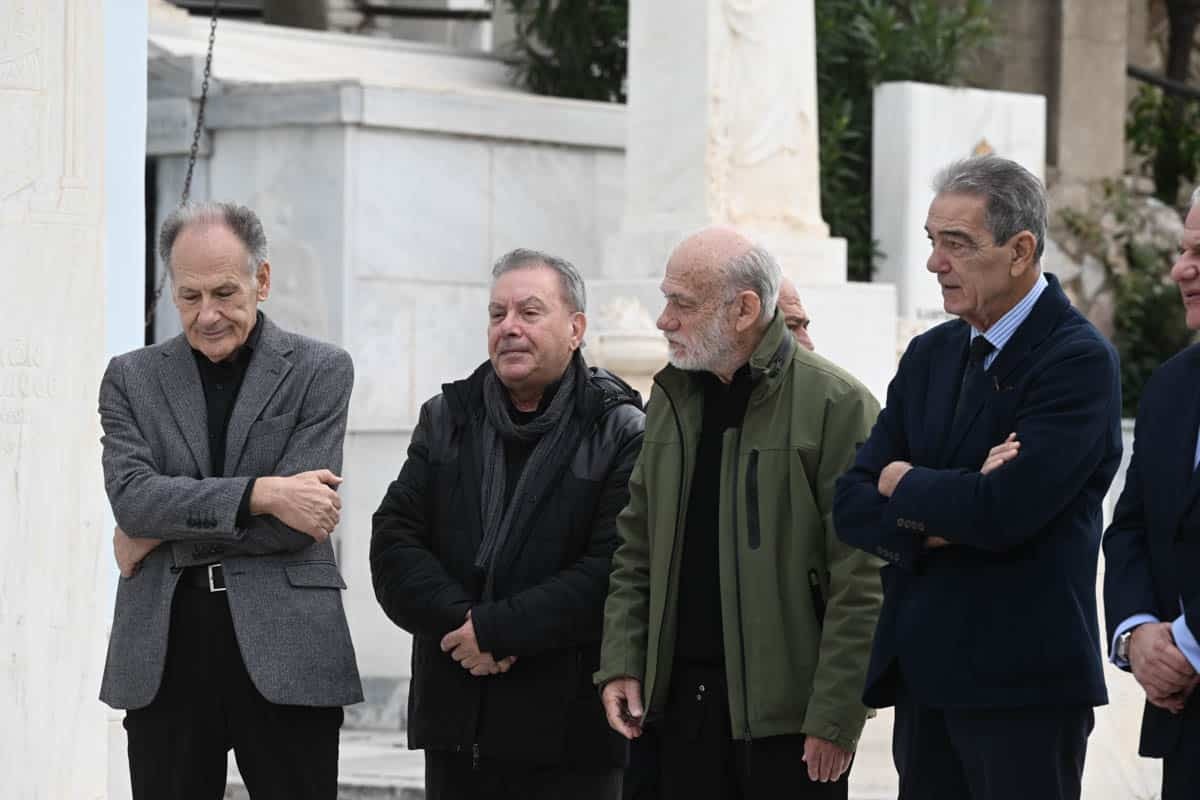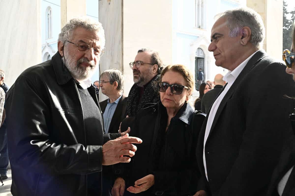 Στην κηδεία παρέστησαν εκπρόσωποι των γραμμάτων και των τεχνών και του πολιτικού κόσμου, όπως μεταξύ άλλων ο πρόεδρος του ΣΥΡΙΖΑ-ΠΣ, Στέφανος Κασσελάκης, ο πρώην πρόεδρος της Δημοκρατίας, Προκόπης Παυλόπουλος, η βουλευτής του ΣΥΡΙΖΑ ‘Ελενα Ακρίτα, ο βουλευτής Νίκος Βούτσης, ο σκηνοθέτης Κώστας Γαβράς, η πρόεδρος της ΕΣΗΕΑ, Μαρία Αντωνιάδου, ο Φώτης Κουβέλης, ο Αλέξανδρος Λυκουρέζος, η Λούκα Κατσέλη ο Γιώργος και η Αννα Νταλάρα, η Ρέα Γαλανάκη, ο Χρήστος Χωμενίδης, ο Γιώργος Κατσαρός, ο Γιώργος Μαργαρίτης, ο Κώστας Λαλιώτης κ.α.