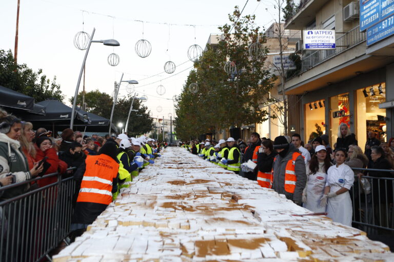 Για την παρασκευή της τεράστιας Βασιλόπιτας ενδεικτικά χρειάστηκαν: 9,5 τόνοι αλεύρι, 1.900 κιλά λάδι, 5.700 αυγά, 600 κιλά ζάχαρη και άλλα τόσα ζάχαρη άχνη.