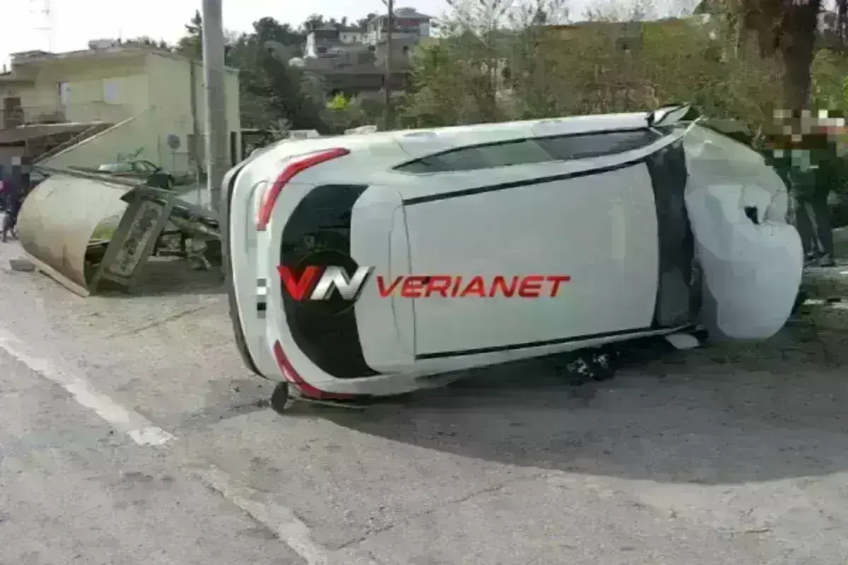 Όπως φαίνεται στις εικόνες, από την πρόσκρουση η στάση λεωφορείου καταστράφηκε, ενώ το αυτοκίνητο αναποδογύρισε στο πλάι. Μέχρι στιγμής δεν έχουν γίνει γνωστές περισσότερες πληροφορίες για τις συνθήκες κάτω από τις οποίες συνέβη το τροχαίο.
