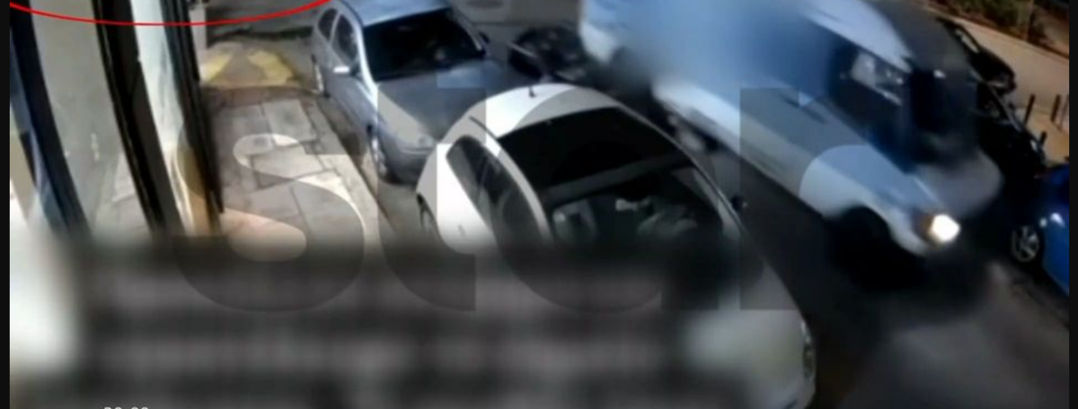 Το βίντεο που κατέγραψε κάμερα ασφαλείας δείχνει το φορτηγάκι να περνά από πάνω του και να τον πατά με τις πίσω ρόδες.
