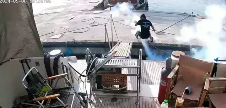 Το σοβαρό περιστατικό έγινε στο λιμάνι του Βόλου. Το περιστατικό κατέγραψε κάμερα σκάφους και δείχνει έναν νεαρό άντρα να επεξεργάζεται έναν πυροσβεστήρα.