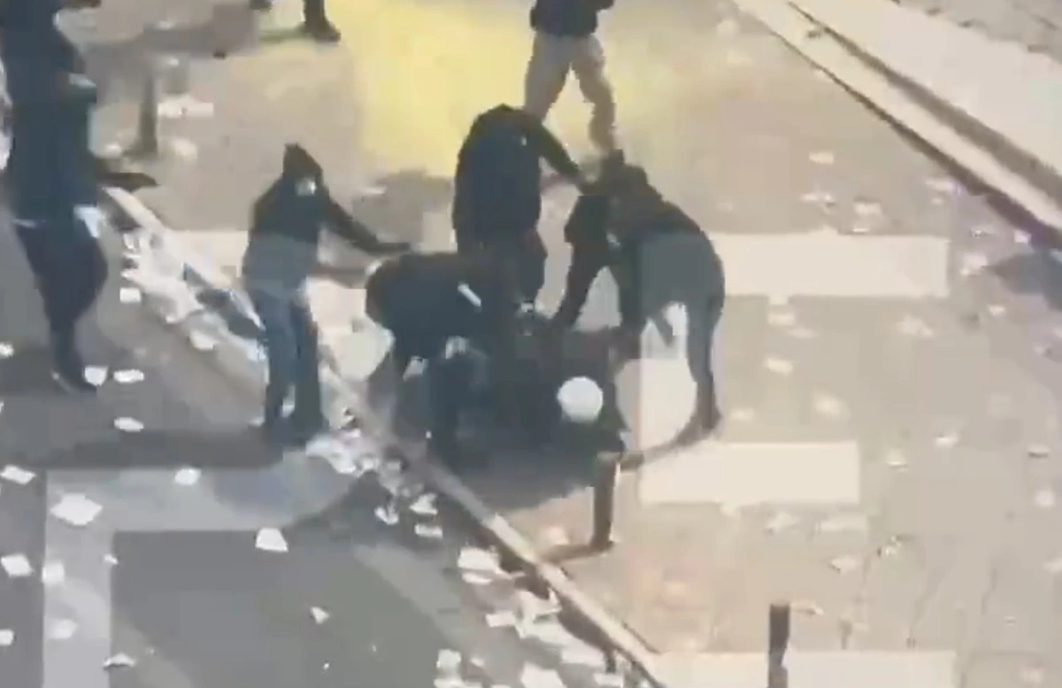 Στο βίντεο φαίνονται δεκάδες κουκουλοφόροι να ξυλοκοπούν άγρια έναν άνδρα των ΜΑΤ κατά τη διάρκεια των άγριων επεισοδίων στο Σύνταγμα, με τον άνδρα να σώζεται από τους συναδέλφους του.