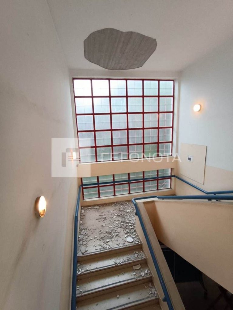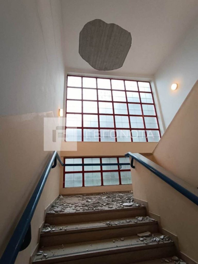 Σύμφωνα με πληροφορίες του gegonota.news, η καθαρίστρια πήγε νωρίς το πρωί στο σχολείο για να καθαρίσει και όταν μπήκε μέσα, είδε σοβάδες πεσμένους στη σκάλα. Πλησιάζοντας προς το σημείο για να διαπιστώσει τι συνέβη, άρχισαν να πέφτουν κι άλλα μεγάλα κομμάτια σοβάδων από την οροφή και λίγο έλειψε να τραυματιστεί.
