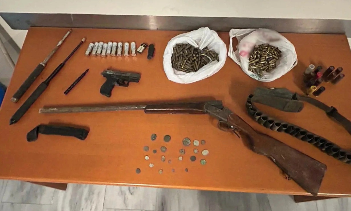 Οι αστυνομικοί εντόπισαν τη σπηλιά λίγο έξω από τα Βορίζια, η οποία είναι σε χώρο που του ανήκει. Εκεί εντοπίστηκε κυνηγετική καραμπίνα, κυνηγετικά φυσίγγια και πολλά φυσίγγια των 9 mm για πιστόλια. Μάλιστα, η είσοδος της σπηλιάς ήταν κλεισμένη με πέτρες και ξύλα, διαδικασία που φαίνεται να ήταν πρόσφατη. Σε βάρος του έχει ήδη ασκηθεί δικογραφία στο πλαίσιο του αυτοφώρου και θα οδηγηθεί στον εισαγγελέα.