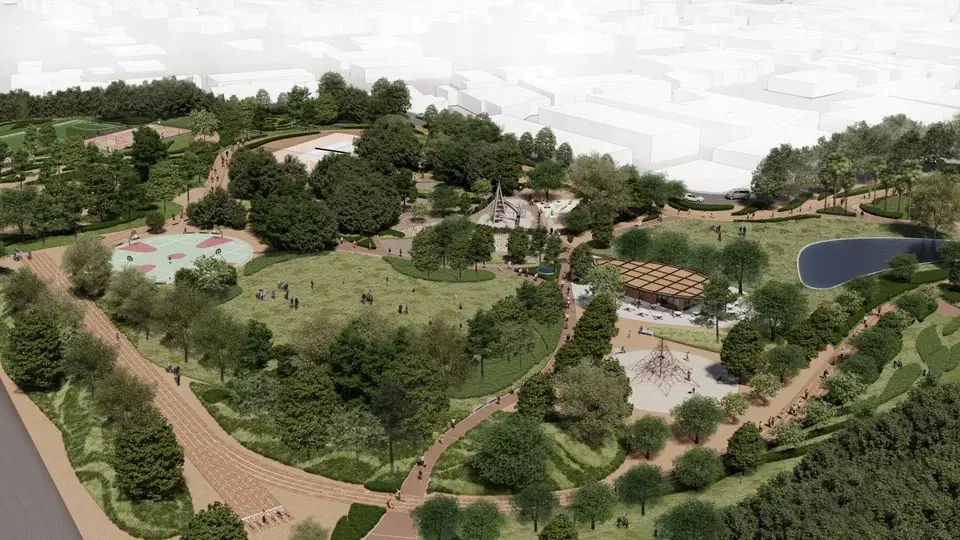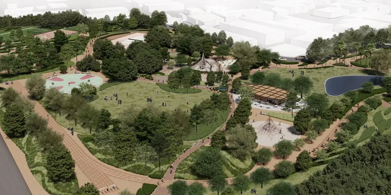 3.563 νέα δέντρα, 102.000 θάμνοι, κήποι βροχής, τεχνητοί λόφοι και μια λίμνη 950 τ.μ. στο νέο πάρκο