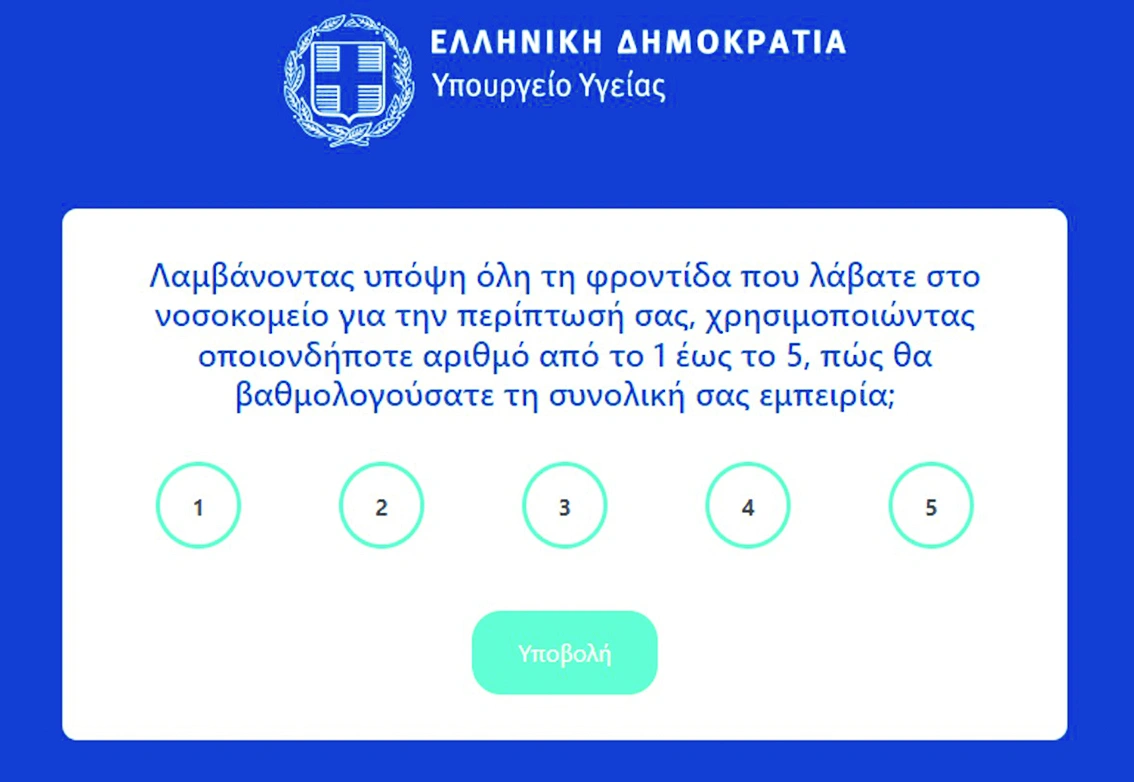 Το νέο ψηφιακό εργαλείο αξιολόγησης του ΕΣΥ τίθεται σε λειτουργία από τα υπουργεία Υγείας και Ψηφιακής Διακυβέρνησης, με σκοπό να δώσει στους ασθενείς τη δυνατότητα να βαθμολογούν ανώνυμα και με ασφάλεια τις υπηρεσίες που έλαβαν κατά τη διάρκεια της νοσηλείας τους, ώστε να αναδεικνύονται τα προβλήματα και οι Αρχές να παρεμβαίνουν για λύσεις.